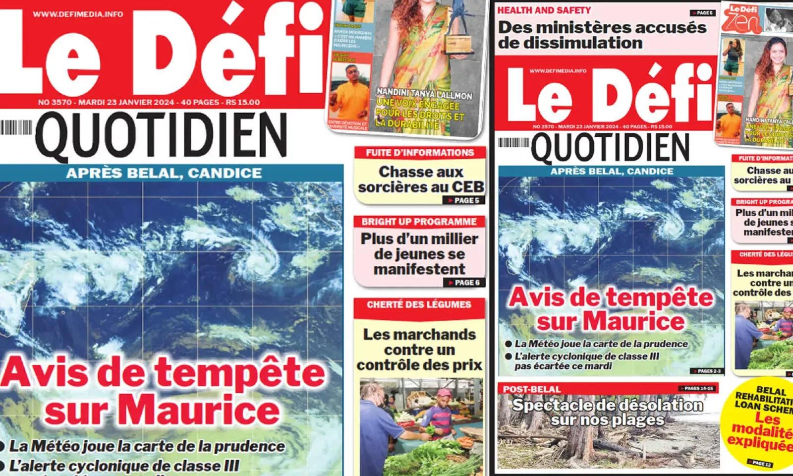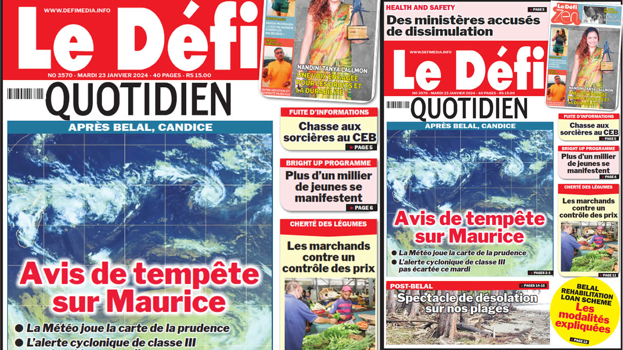 ? Voici la Une du Défi Quotidien. Le journal est en vente à Rs 15 l'exemplaire aux endroits habituels (supermarchés, boutiques, tabagies, superettes). Bonne lecture !