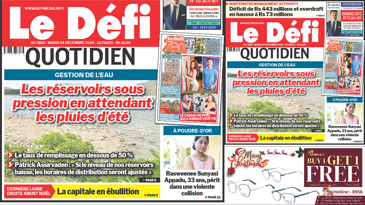 ? Voici la Une du Défi Quotidien. Le journal est en vente à Rs 15 l'exemplaire aux endroits habituels (supermarchés, boutiques, tabagies, superettes). Bonne lecture !