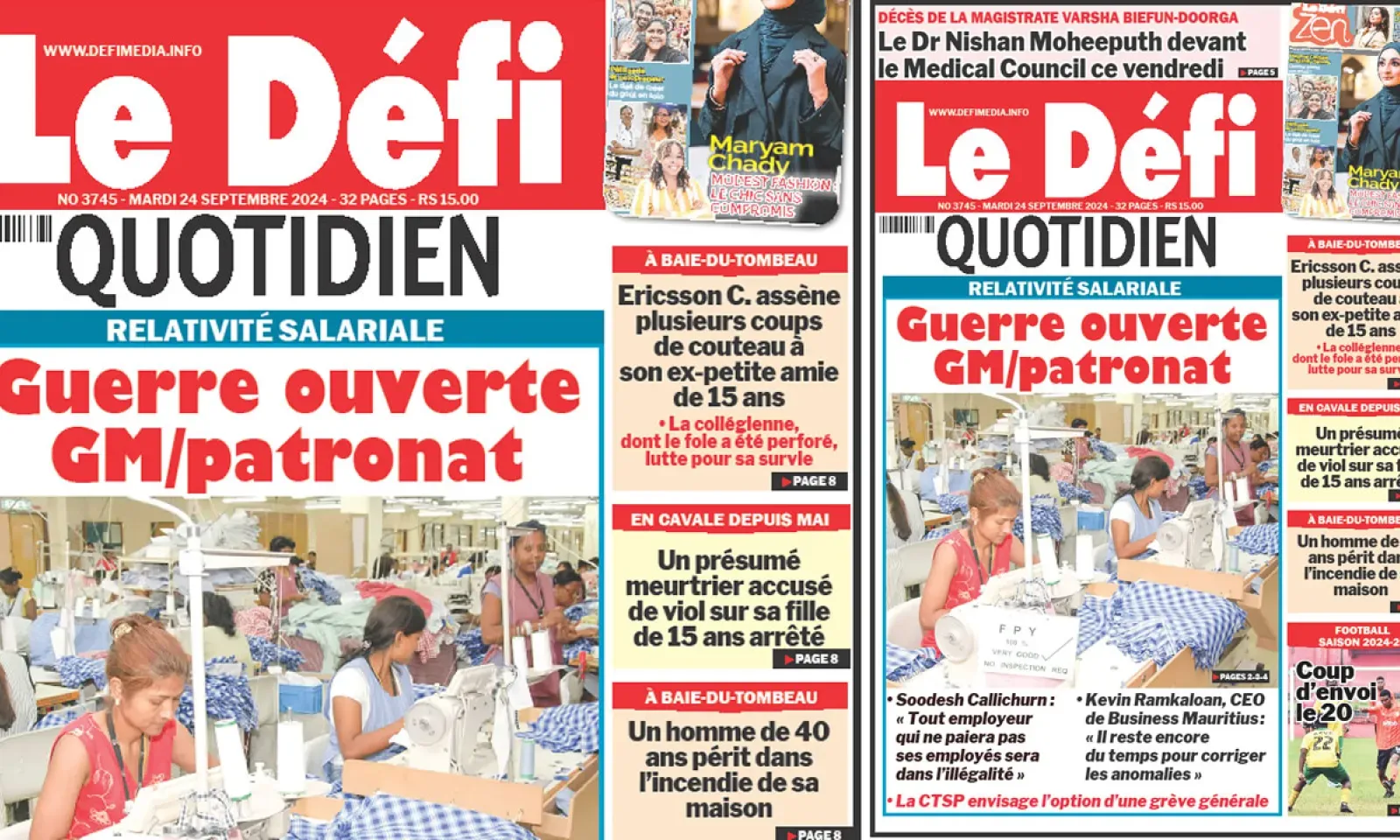 ? Voici la Une du Défi Quotidien. Le journal est en vente à Rs 15 l'exemplaire aux endroits habituels (supermarchés, boutiques, tabagies, superettes). Bonne lecture !