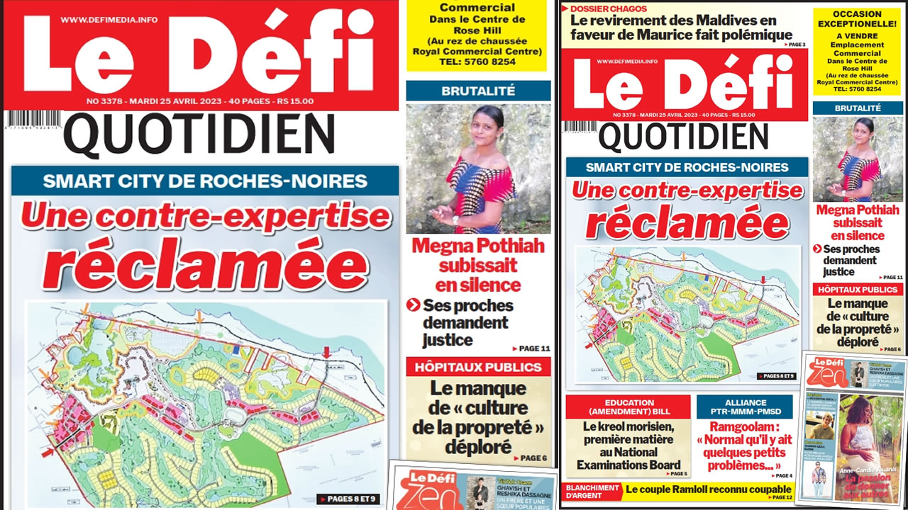 ? Voici la Une du Défi Quotidien. Le journal est en vente à Rs 15 l'exemplaire aux endroits habituels (supermarchés, boutiques, tabagies, superettes). Bonne lecture !