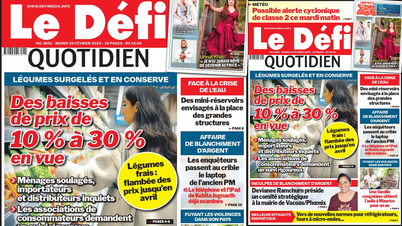? Voici la Une du Défi Quotidien. Le journal est en vente à Rs 15 l'exemplaire aux endroits habituels (supermarchés, boutiques, tabagies, superettes). Bonne lecture !