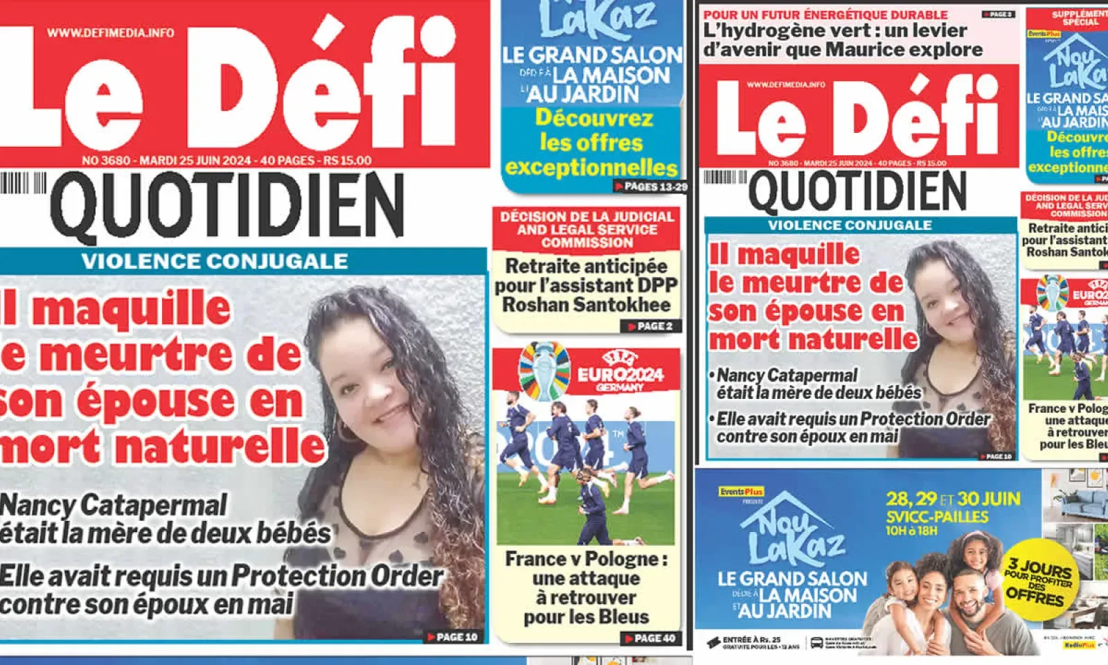 ? Voici la Une du Défi Quotidien. Le journal est en vente à Rs 15 l'exemplaire aux endroits habituels (supermarchés, boutiques, tabagies, superettes). Bonne lecture !