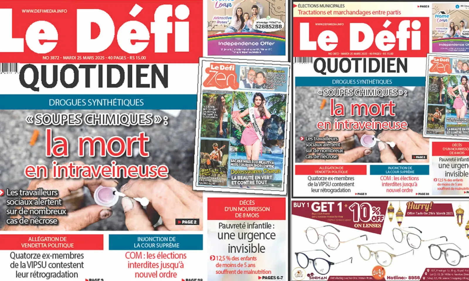 ? Voici la Une du Défi Quotidien. Le journal est en vente à Rs 15 l'exemplaire aux endroits habituels (supermarchés, boutiques, tabagies, superettes). Bonne lecture !