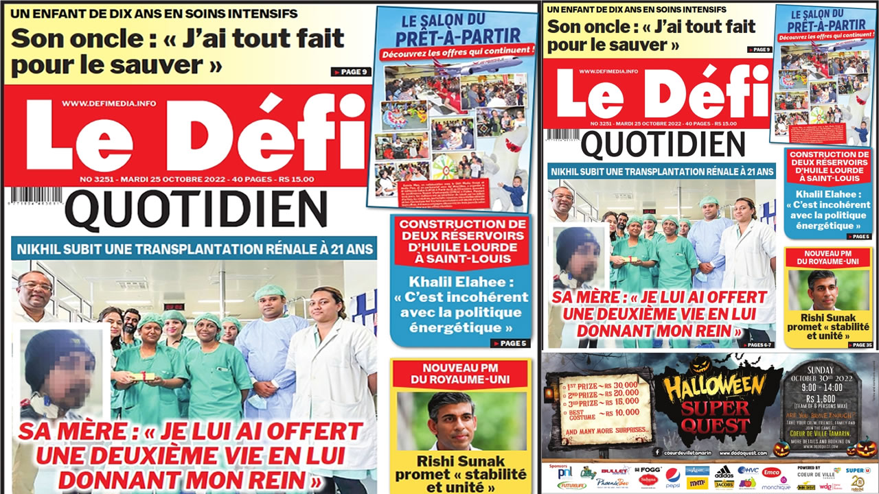 Voici la une du Défi Quotidien de ce mardi 25 Octobre 2022