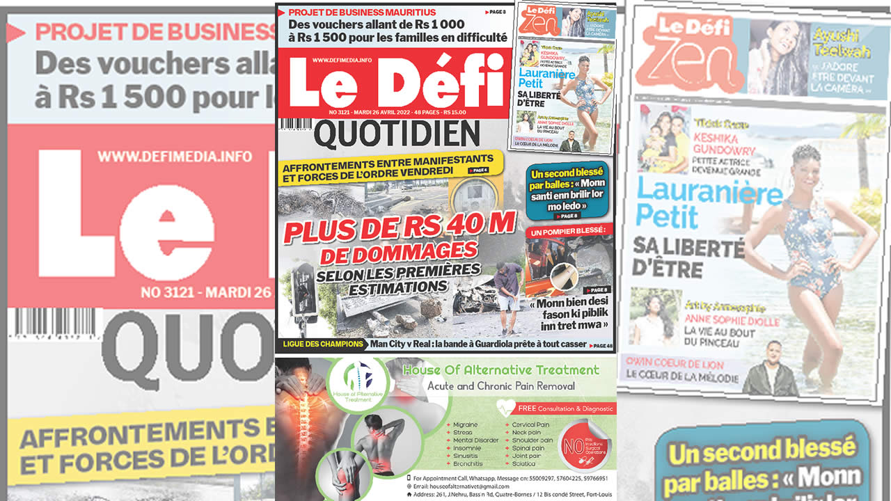 ? Voici la Une du Défi Quotidien. Le journal est en vente à Rs 15 l'exemplaire aux endroits habituels (supermarchés, boutiques, tabagies, superettes). Bonne lecture !