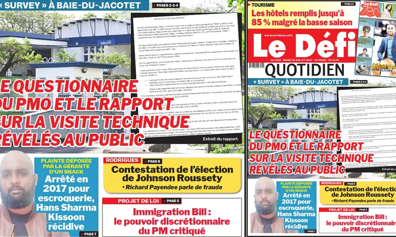 ? Voici la Une du Défi Quotidien. Le journal est en vente à Rs 15 l'exemplaire aux endroits habituels (supermarchés, boutiques, tabagies, superettes). Bonne lecture !