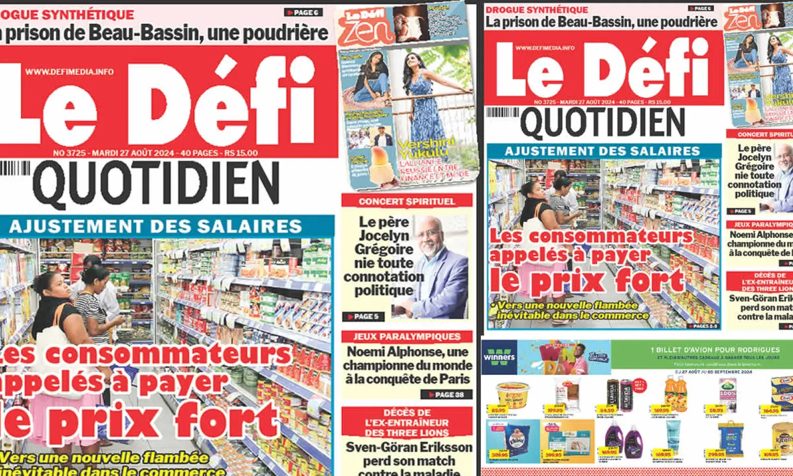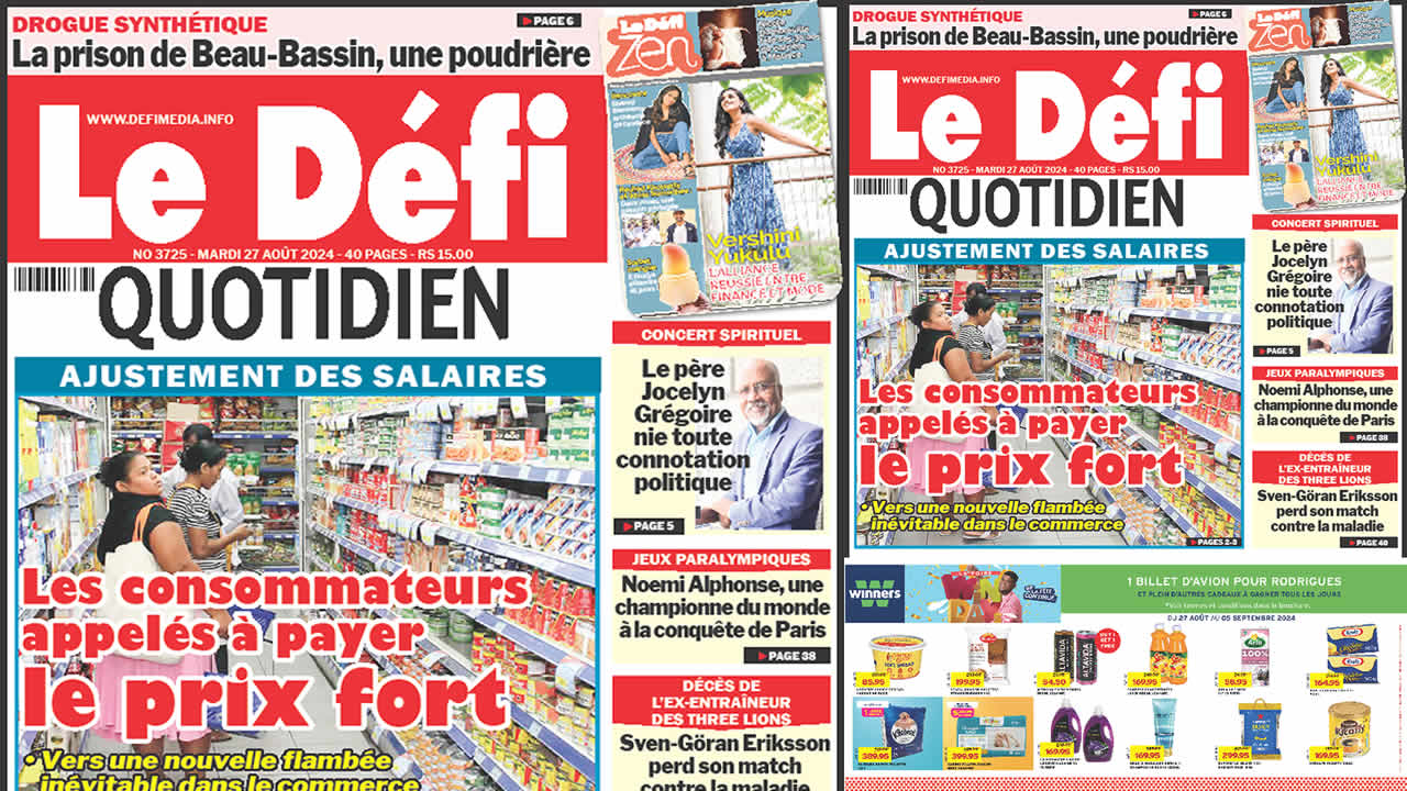 ? Voici la Une du Défi Quotidien. Le journal est en vente à Rs 15 l'exemplaire aux endroits habituels (supermarchés, boutiques, tabagies, superettes). Bonne lecture !