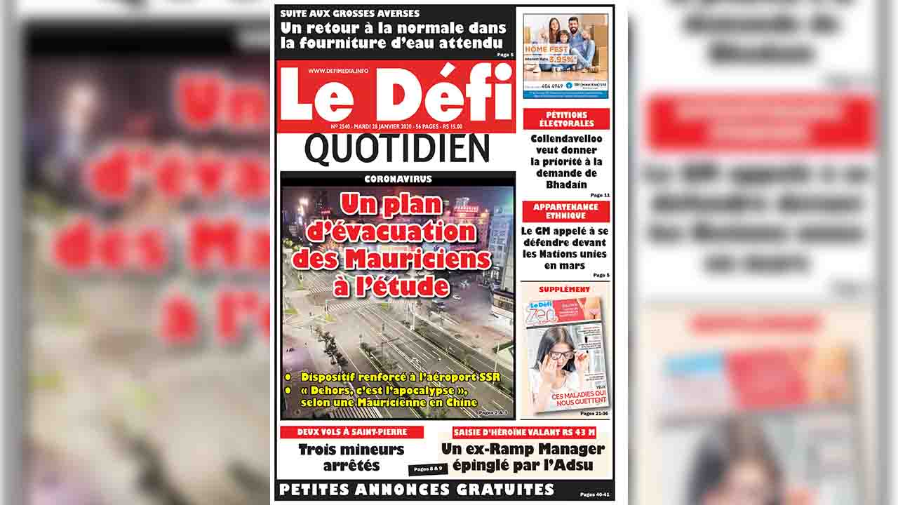 Voici la Une du Défi Quotidien de ce mardi 28 janvier 2020