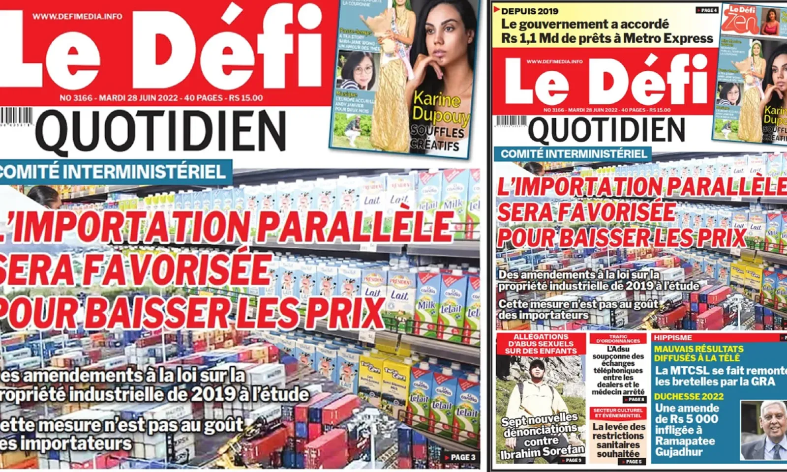 ? Voici la Une du Défi Quotidien. Le journal est en vente à Rs 15 l'exemplaire aux endroits habituels (supermarchés, boutiques, tabagies, superettes). Bonne lecture !