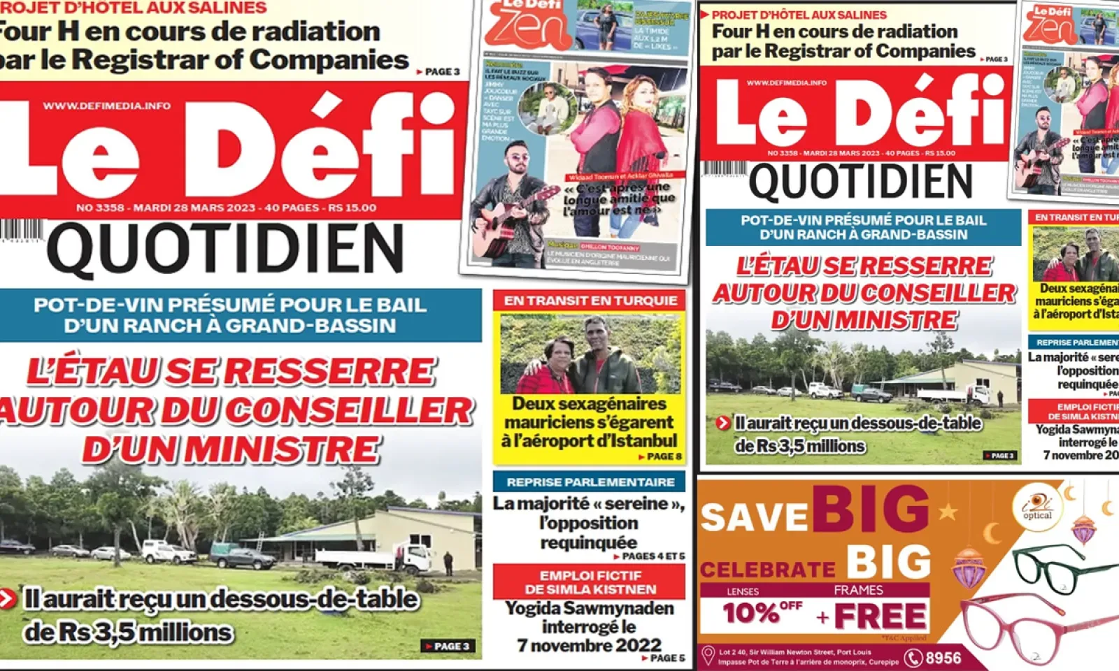 ? Voici la Une du Défi Quotidien. Le journal est en vente à Rs 15 l'exemplaire aux endroits habituels (supermarchés, boutiques, tabagies, superettes). Bonne lecture !