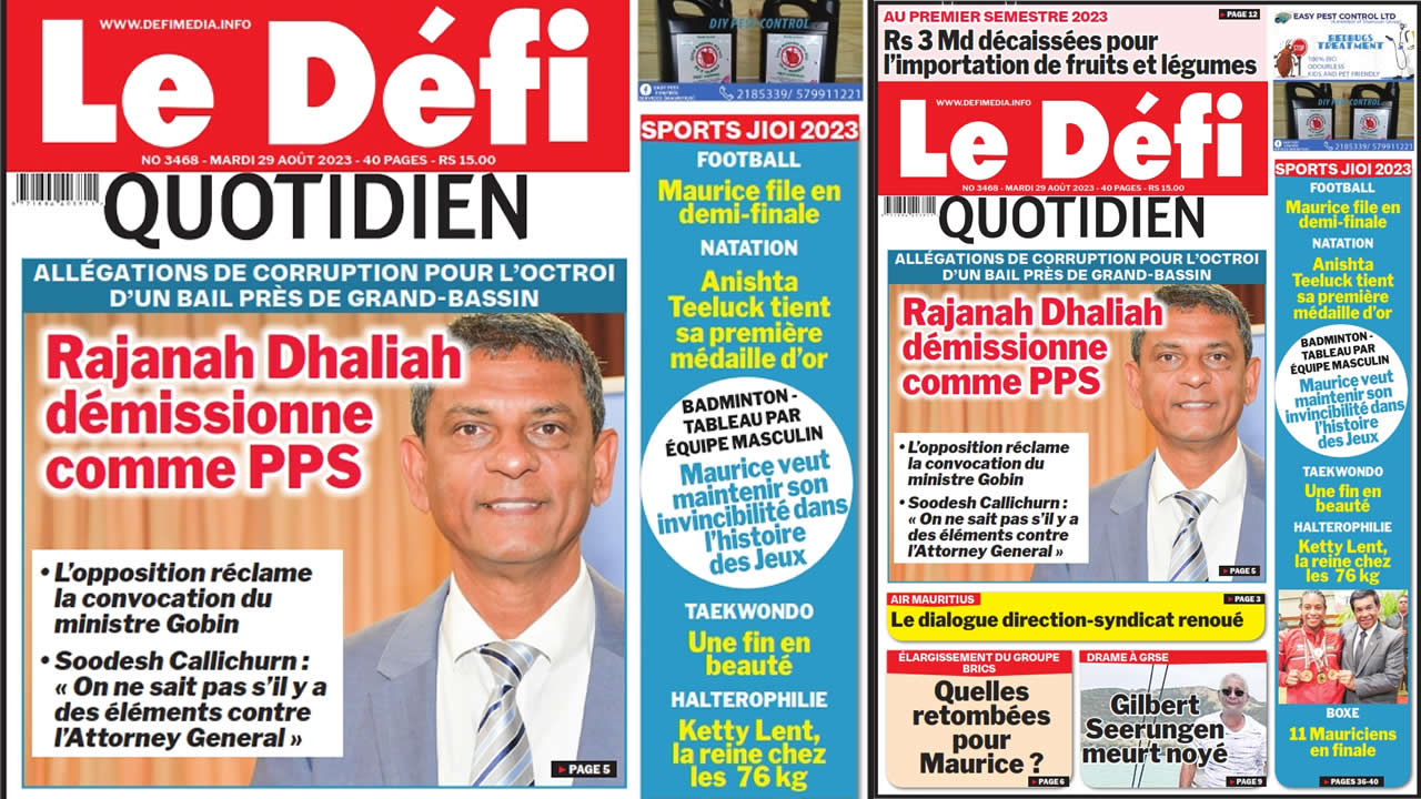 ? Voici la Une du Défi Quotidien. Le journal est en vente à Rs 15 l'exemplaire aux endroits habituels (supermarchés, boutiques, tabagies, superettes). Bonne lecture !
