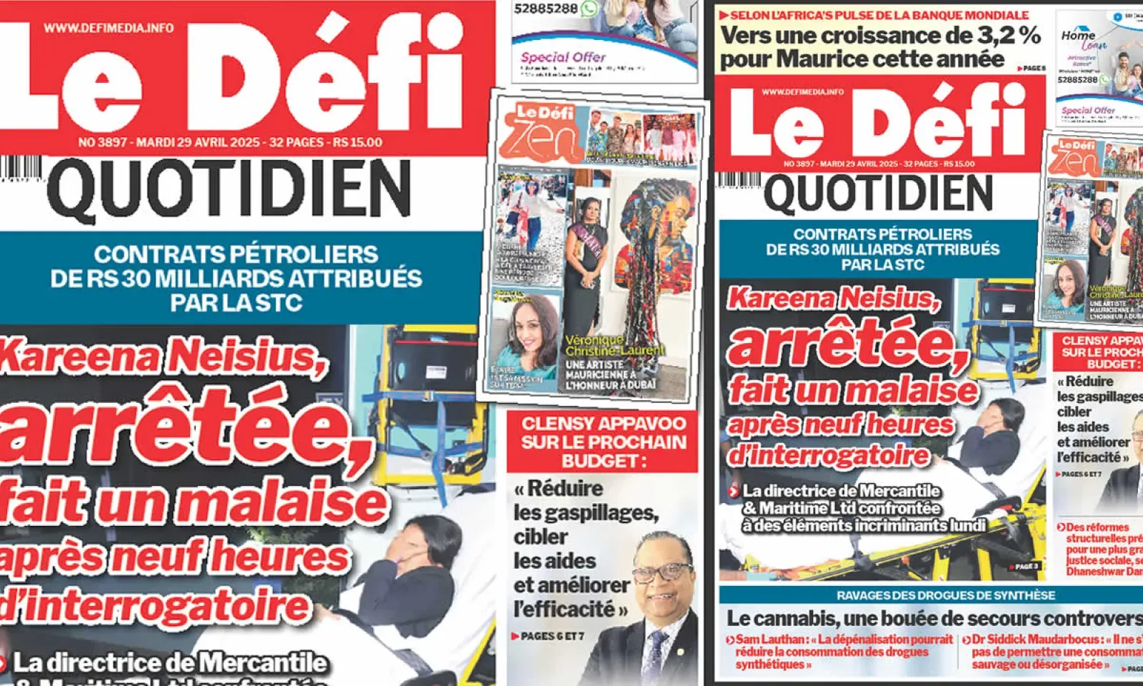 ? Voici la Une du Défi Quotidien. Le journal est en vente à Rs 15 l'exemplaire aux endroits habituels (supermarchés, boutiques, tabagies, superettes). Bonne lecture !