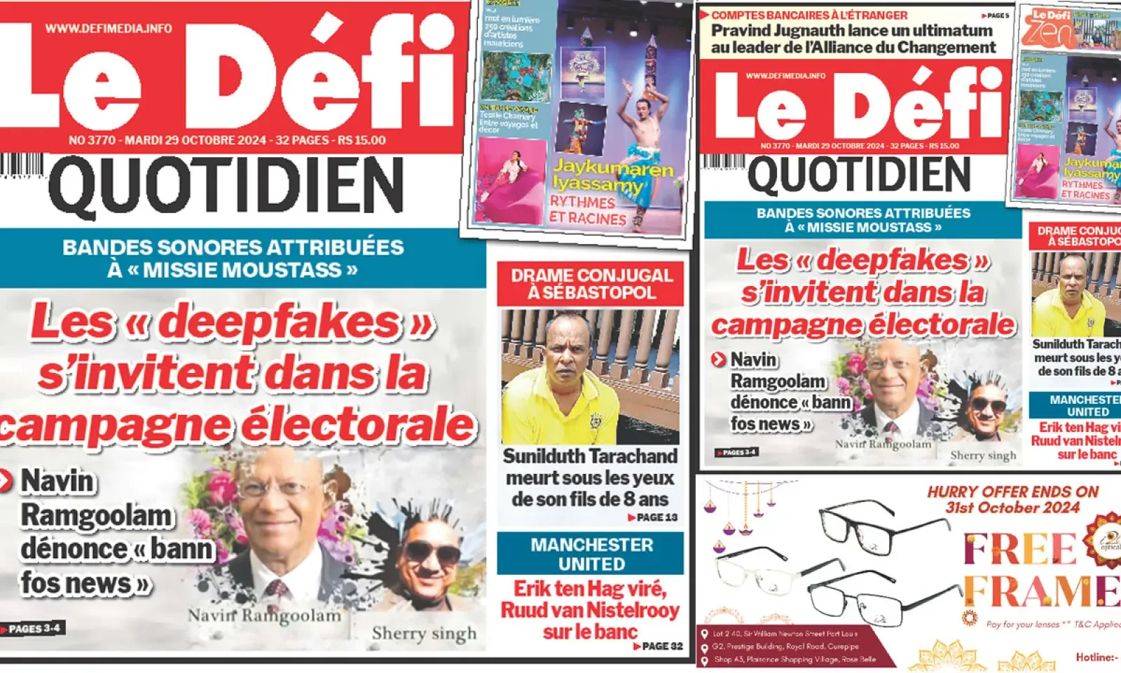? Voici la Une du Défi Quotidien. Le journal est en vente à Rs 15 l'exemplaire aux endroits habituels (supermarchés, boutiques, tabagies, superettes). Bonne lecture !