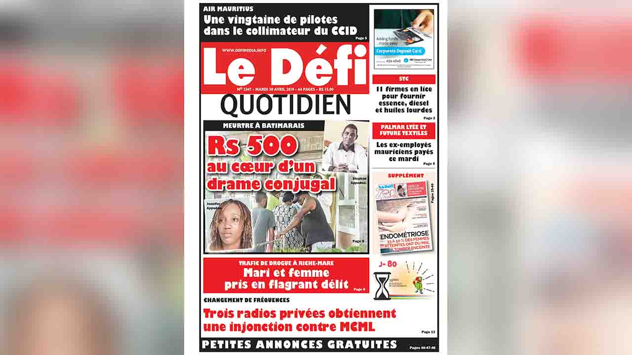 Une énième dispute conjugale a viré au drame à Batimarais. Jennifer Appadoo, 27 ans, a mortellement poignardé son époux Stephan Appadoo, 33 ans, dimanche soir. À l’origine de cette tragédie, une somme de Rs 500 que l’époux aurait dépensée en boissons alcoolisées.