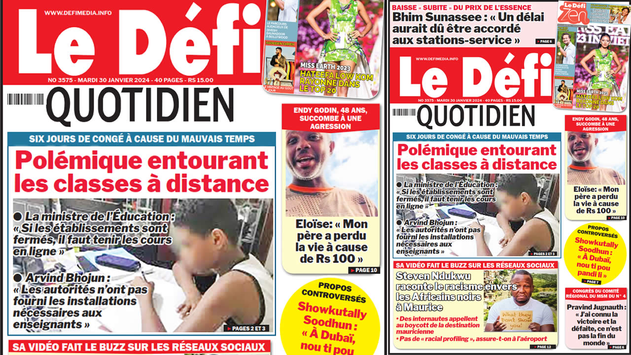 ? Voici la Une du Défi Quotidien. Le journal est en vente à Rs 15 l'exemplaire aux endroits habituels (supermarchés, boutiques, tabagies, superettes). Bonne lecture !