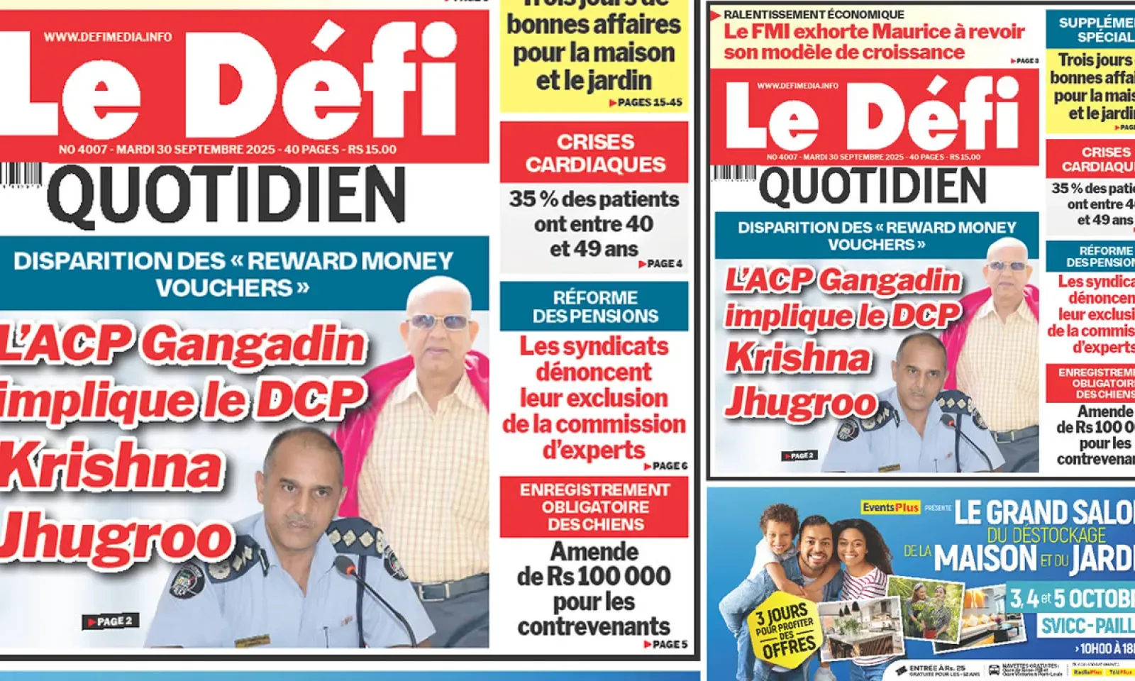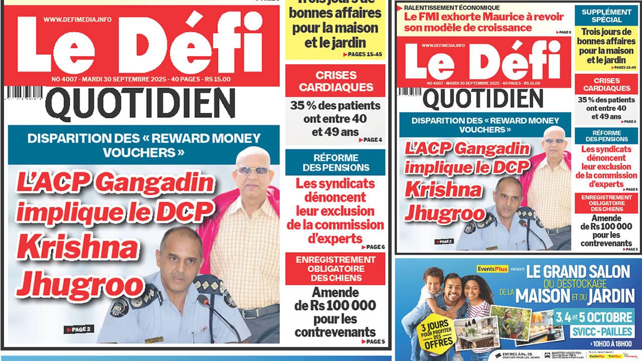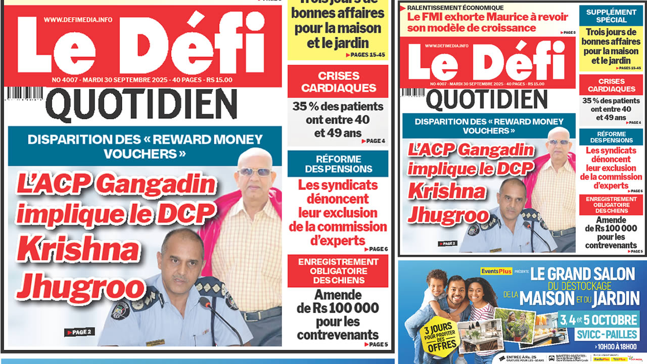 ? Voici la Une du Défi Quotidien. Le journal est en vente à Rs 15 l'exemplaire aux endroits habituels (supermarchés, boutiques, tabagies, superettes). Bonne lecture !