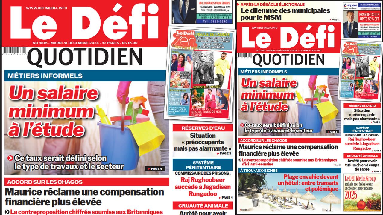 ? Voici la Une du Défi Quotidien. Le journal est en vente à Rs 15 l'exemplaire aux endroits habituels (supermarchés, boutiques, tabagies, superettes). Bonne lecture !