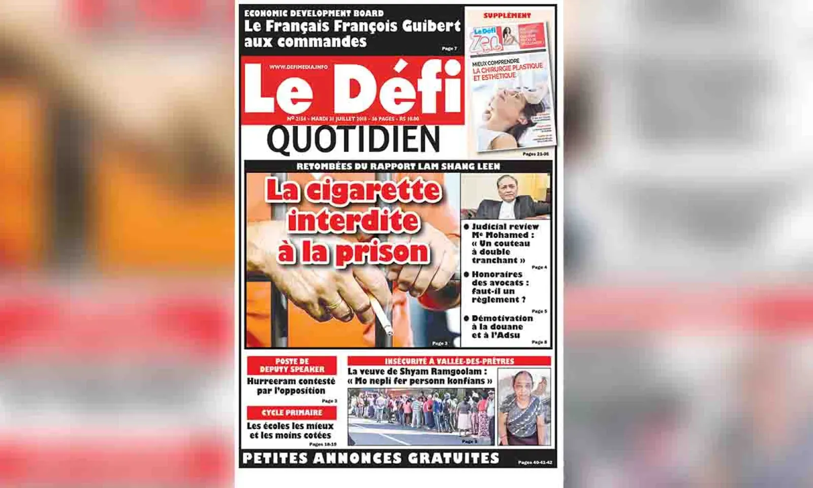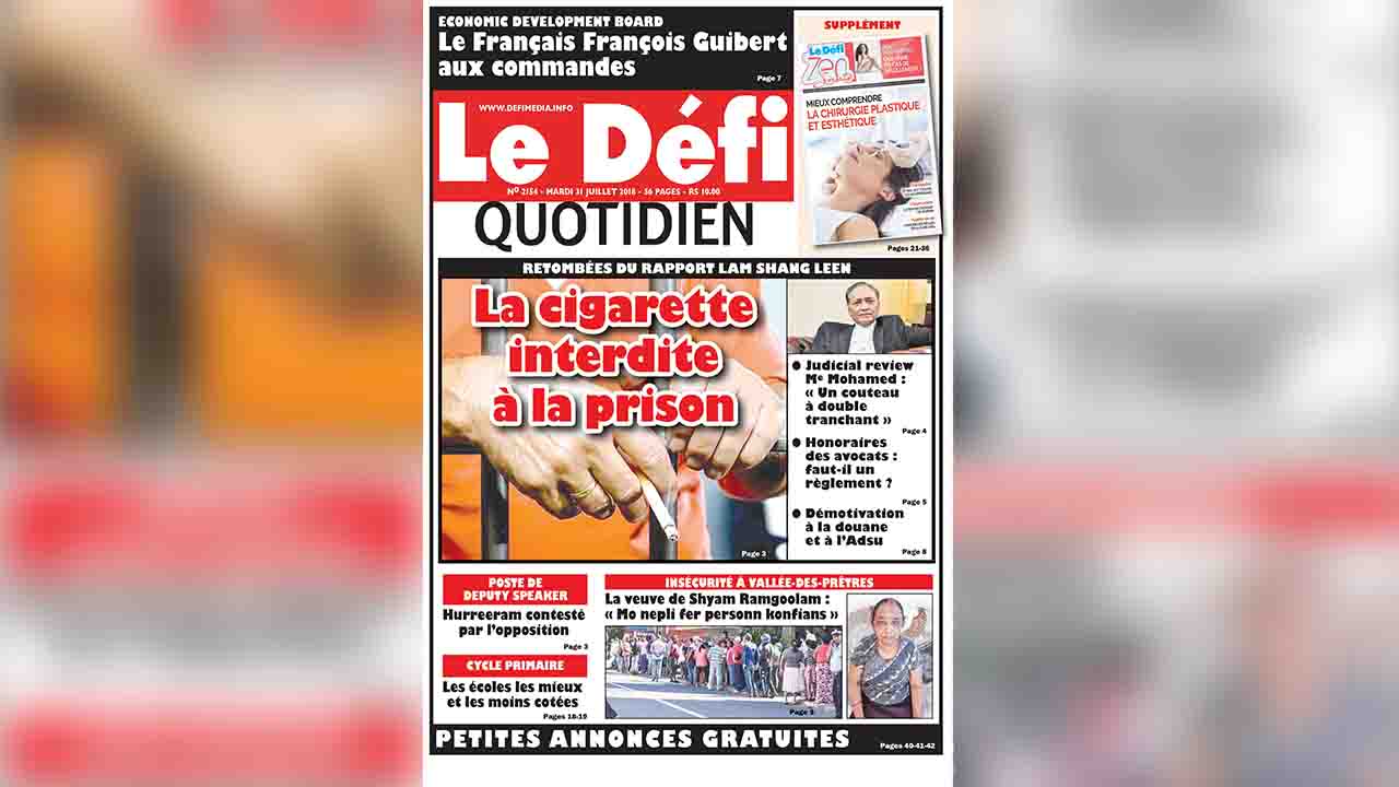 Les cigarettes seront interdites dans les prisons. Cette mesure qui s’inscrit dans la mise en application des recommandations du rapport Lam Shang Leen sur la drogue, vise à freiner les trafics entre prisonniers. Une des recommandations de la Commission d’enquête est l’interdiction de la vente de cigarettes à la cantine de la prison car cela favorise le trafic dans les cellules.