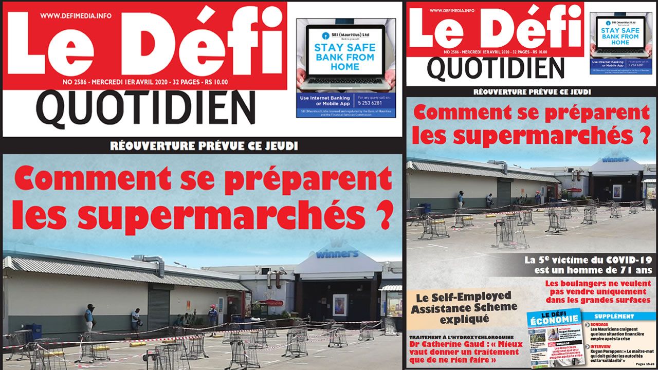 Ces e-Papers sont disponibles depuis le mardi 24 mars 2020 à Rs 10 seulement l’exemplaire et ce, indépendamment de la publication : Le Défi Quotidien, Le Défi Plus et Le Dimanche-L’Hebdo.