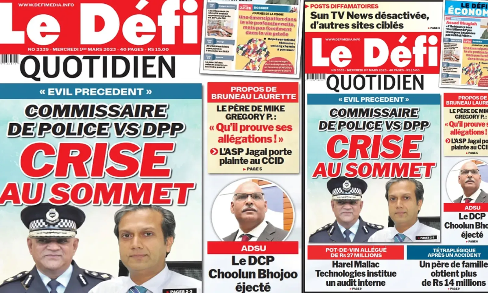 ? Voici la Une du Défi Quotidien. Le journal est en vente à Rs 15 l'exemplaire aux endroits habituels (supermarchés, boutiques, tabagies, superettes). Bonne lecture !