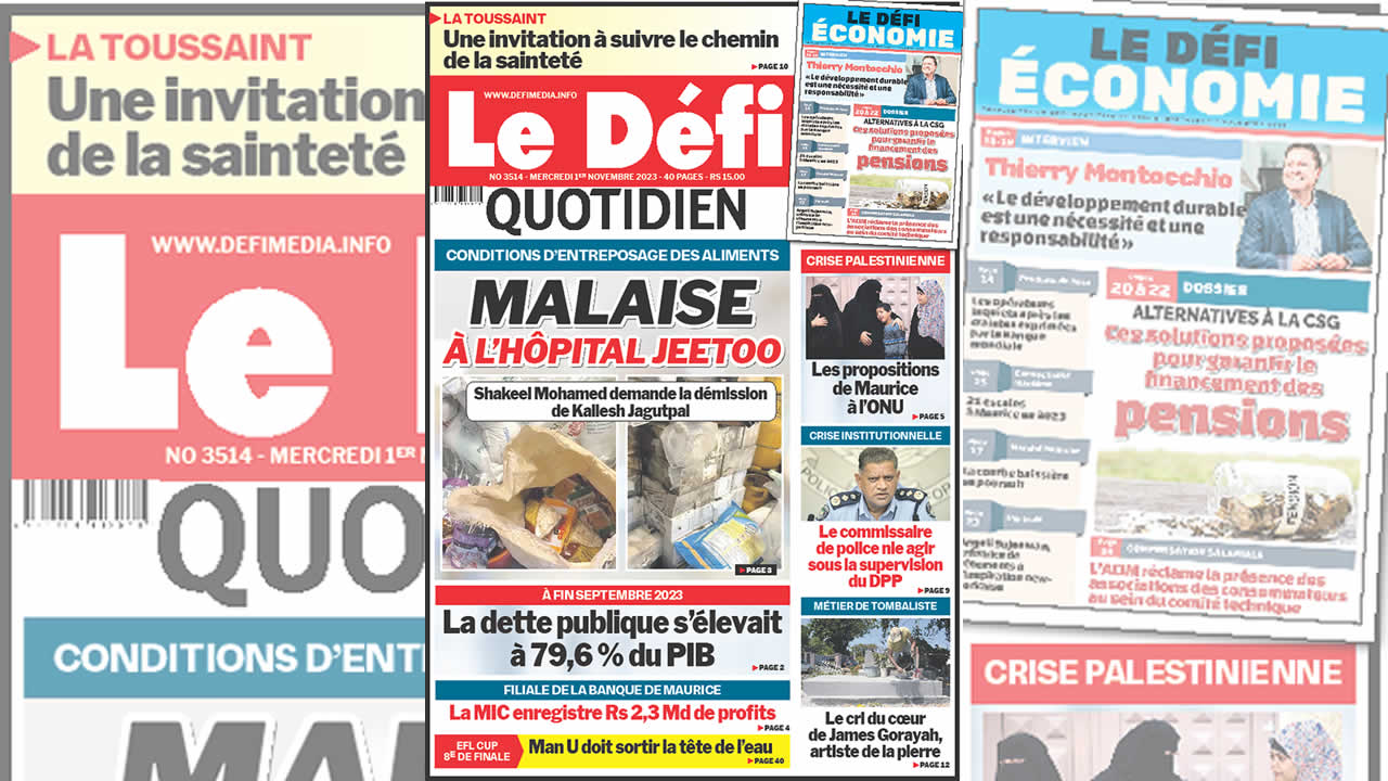 ? Voici la Une du Défi Quotidien. Le journal est en vente à Rs 15 l'exemplaire aux endroits habituels (supermarchés, boutiques, tabagies, superettes). Bonne lecture !
