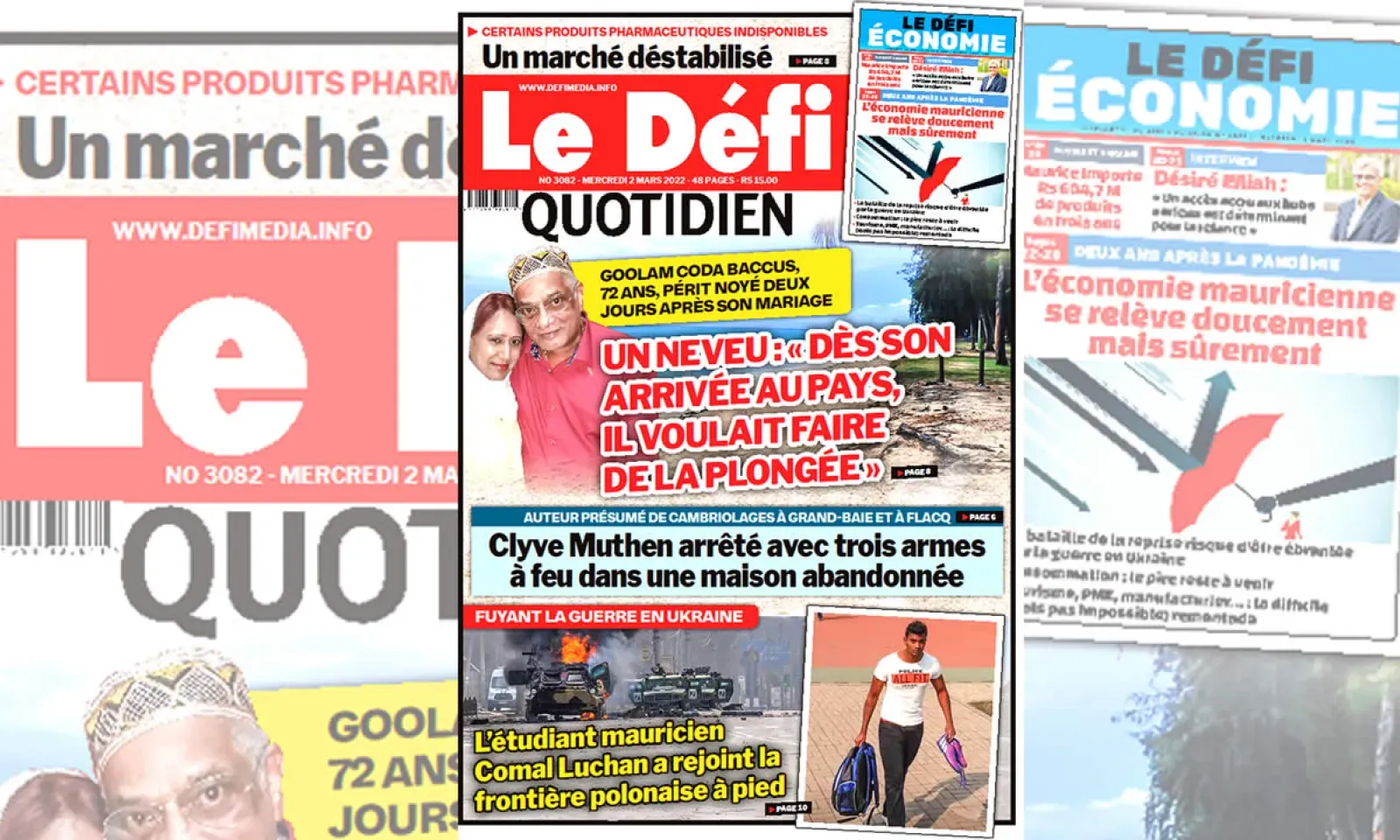 ? Voici la Une du Défi Quotidien. Le journal est en vente à Rs 15 l'exemplaire aux endroits habituels (supermarchés, boutiques, tabagies, superettes). Bonne lecture !