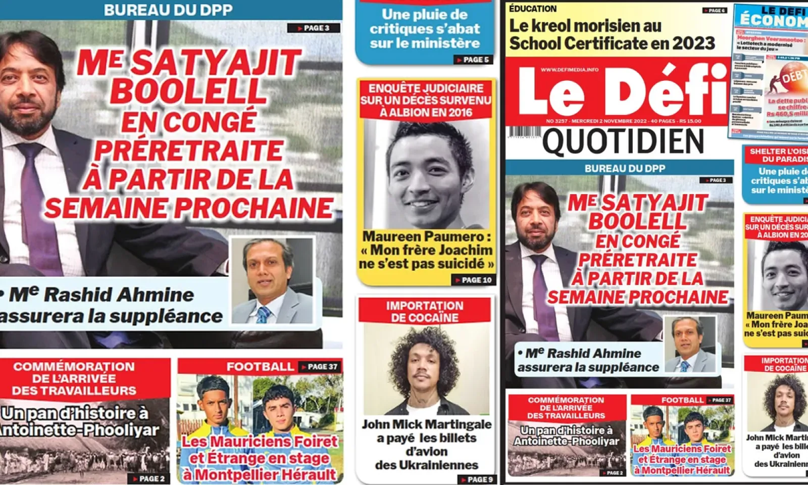 ? Voici la Une du Défi Quotidien. Le journal est en vente à Rs 15 l'exemplaire aux endroits habituels (supermarchés, boutiques, tabagies, superettes). Bonne lecture !