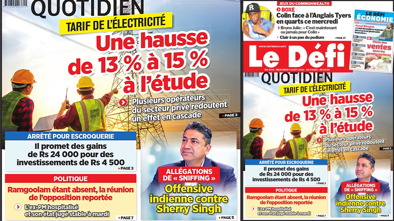 ? Voici la Une du Défi Quotidien. Le journal est en vente à Rs 15 l'exemplaire aux endroits habituels (supermarchés, boutiques, tabagies, superettes). Bonne lecture !