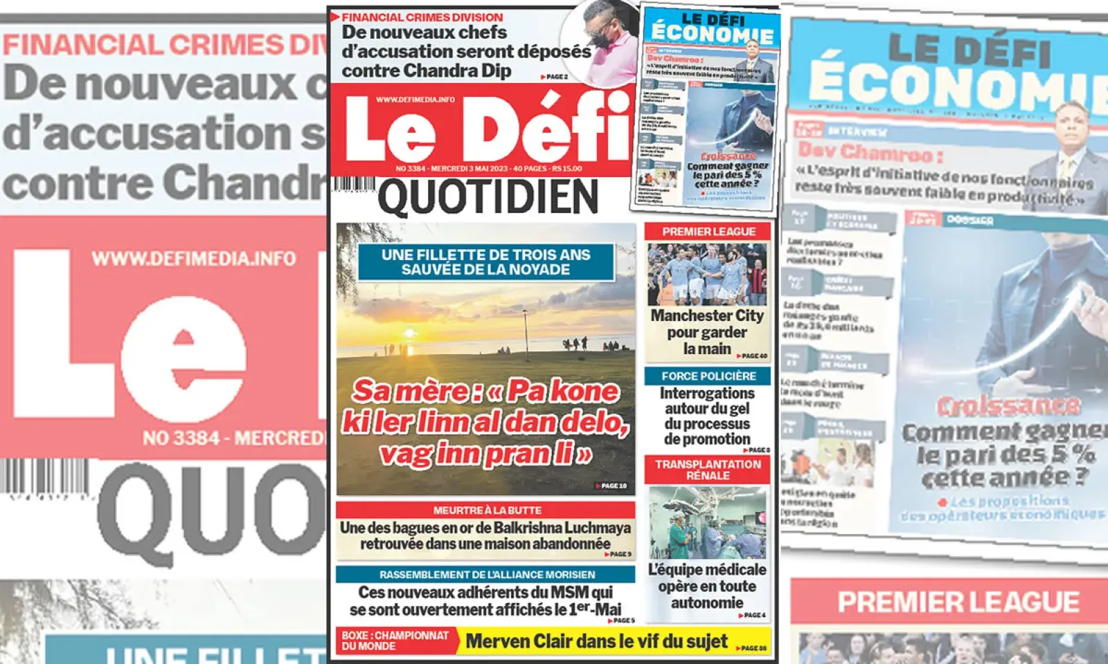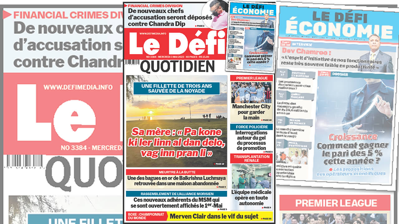 ? Voici la Une du Défi Quotidien. Le journal est en vente à Rs 15 l'exemplaire aux endroits habituels (supermarchés, boutiques, tabagies, superettes). Bonne lecture !