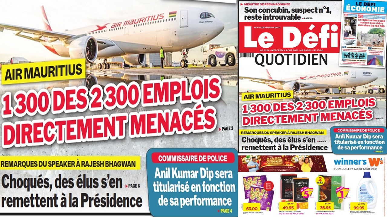 ? Voici la Une du Défi Quotidien. Le journal est en vente à Rs 15 l'exemplaire aux endroits habituels (supermarchés, boutiques, tabagies, superettes). Bonne lecture !