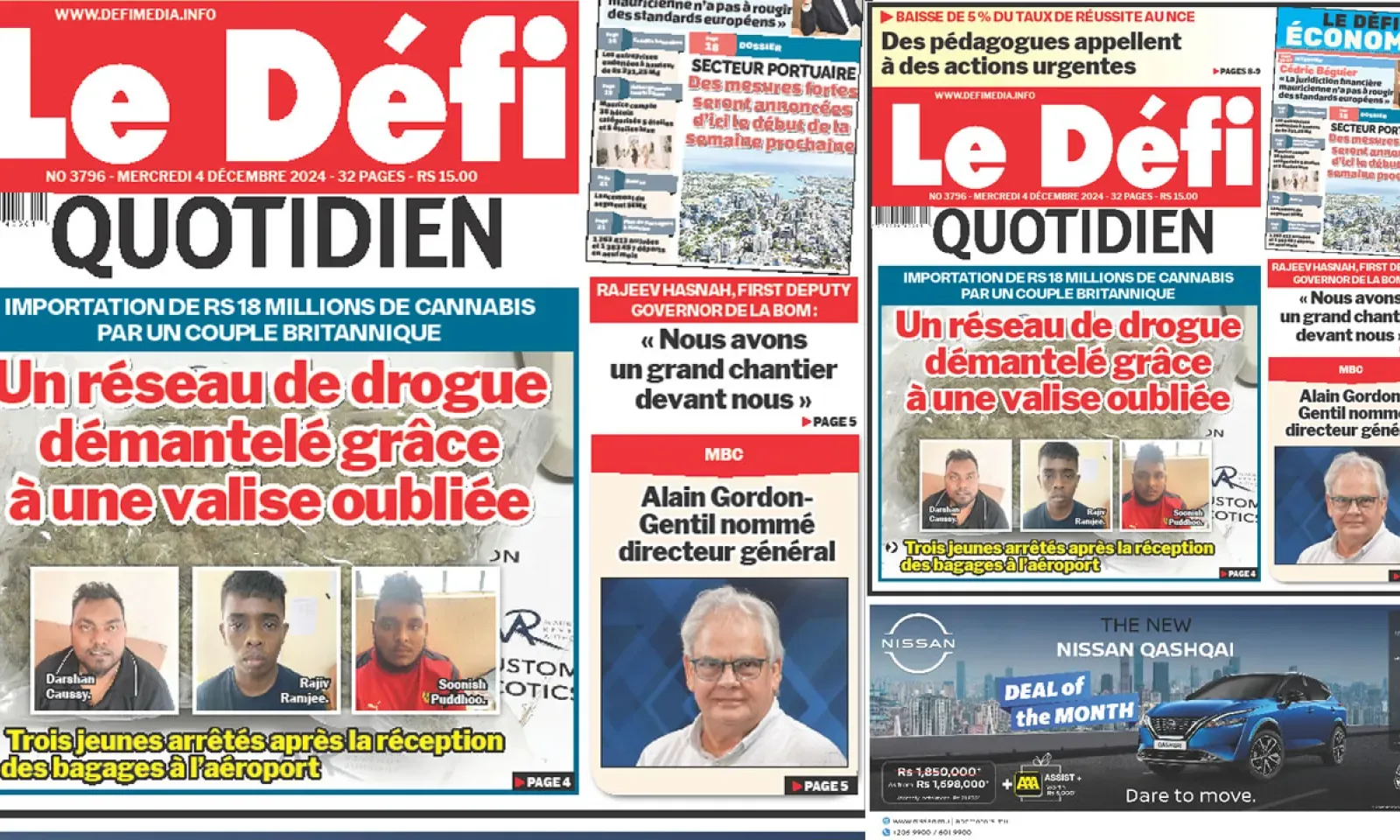 ? Voici la Une du Défi Quotidien. Le journal est en vente à Rs 15 l'exemplaire aux endroits habituels (supermarchés, boutiques, tabagies, superettes). Bonne lecture !