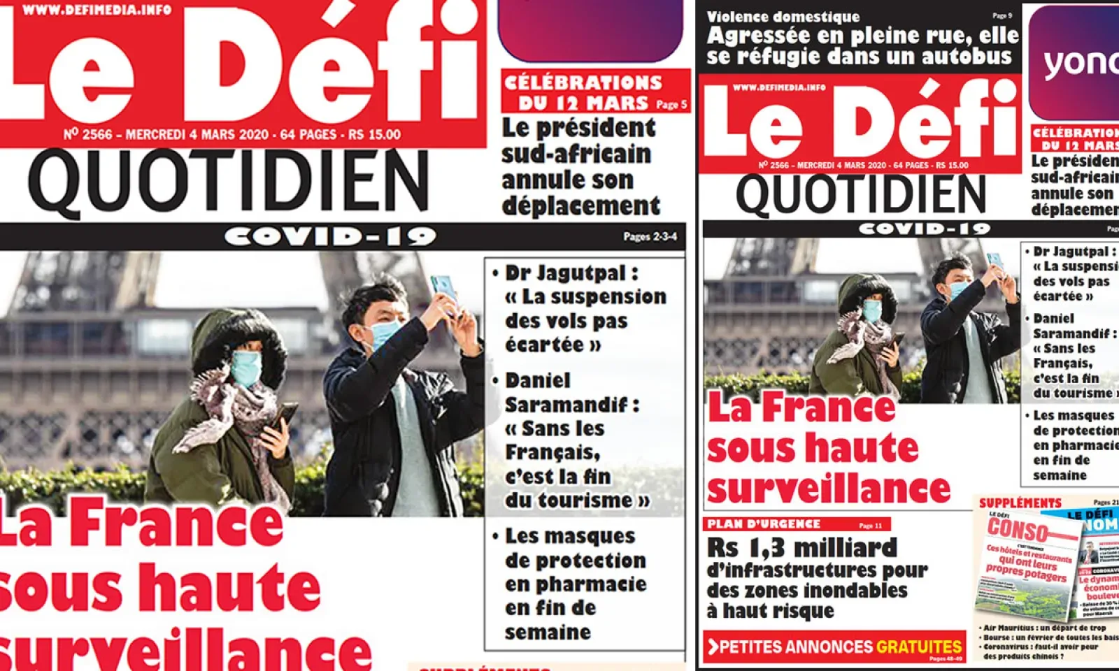 Voici la Une du Défi Quotidien de ce mercredi 04 mars 2020