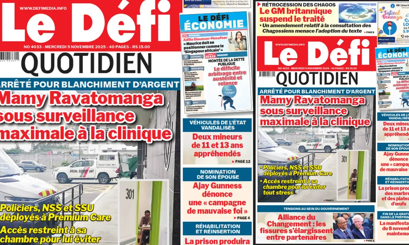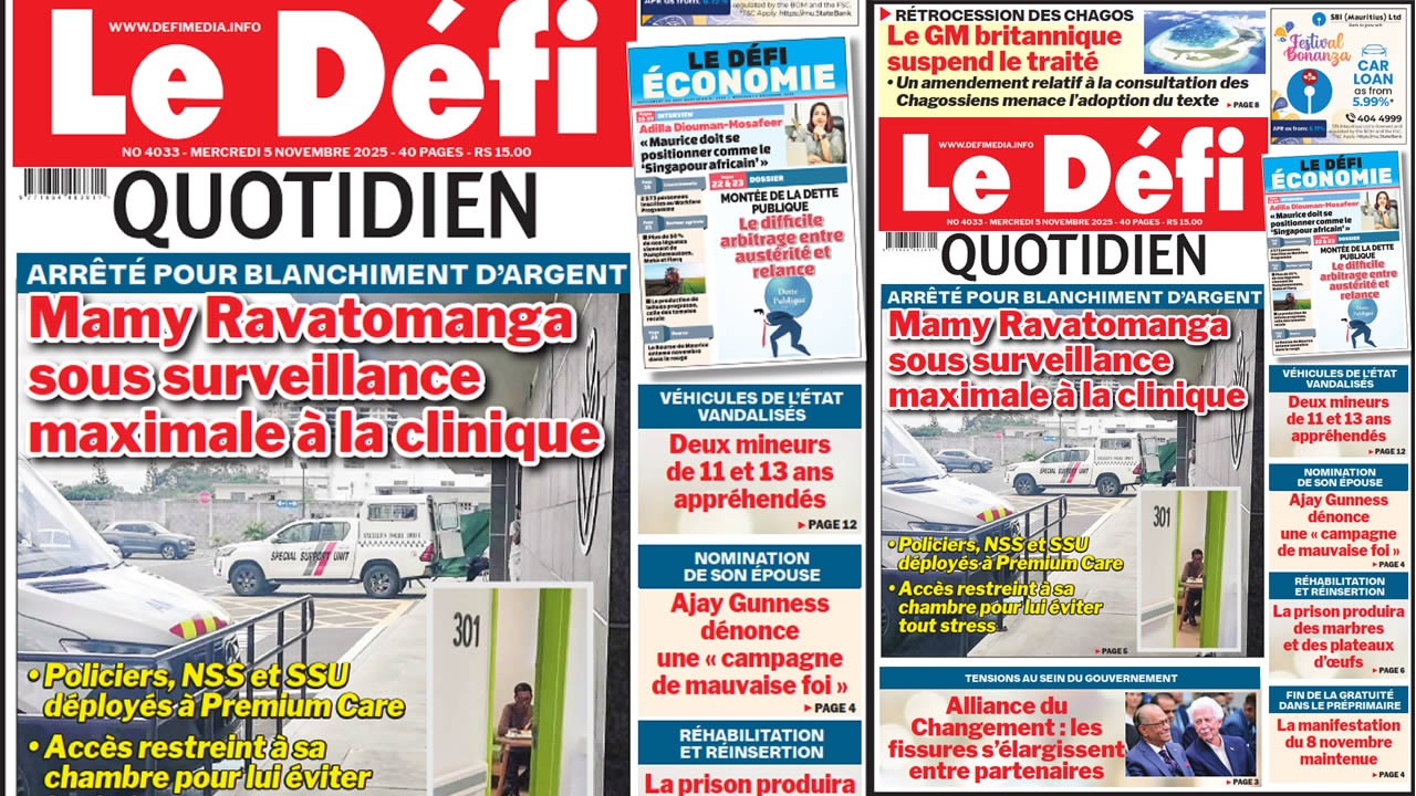 ? Voici la Une du Défi Quotidien. Le journal est en vente à Rs 15 l'exemplaire aux endroits habituels (supermarchés, boutiques, tabagies, superettes). Bonne lecture !