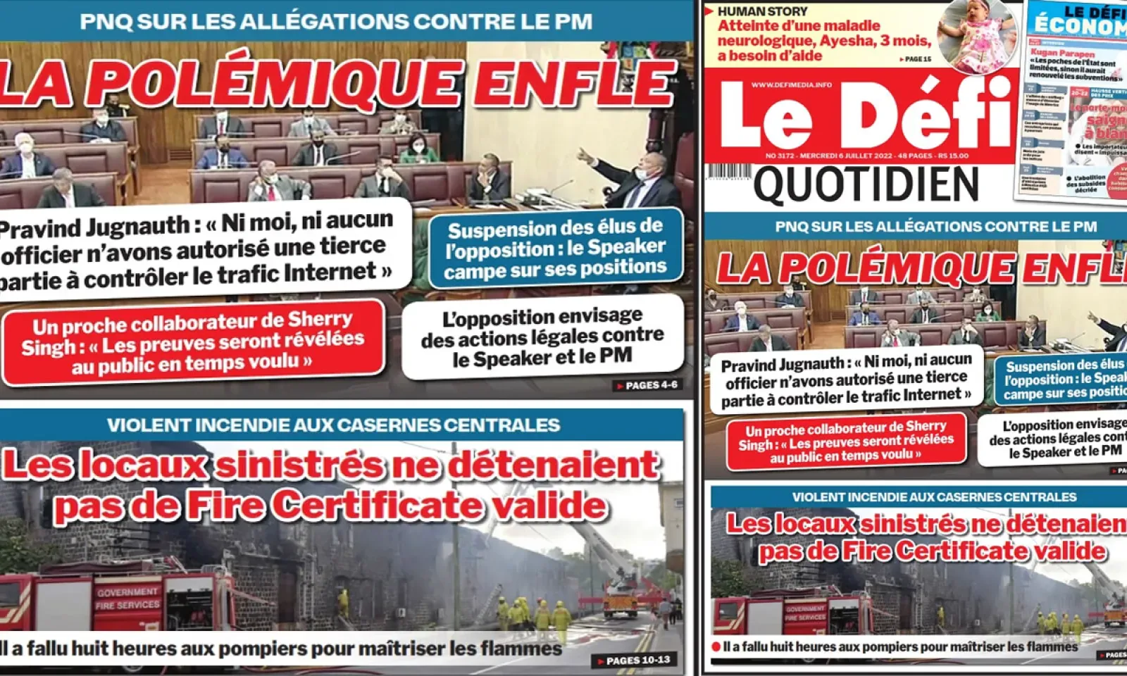 ? Voici la Une du Défi Quotidien. Le journal est en vente à Rs 15 l'exemplaire aux endroits habituels (supermarchés, boutiques, tabagies, superettes). Bonne lecture !