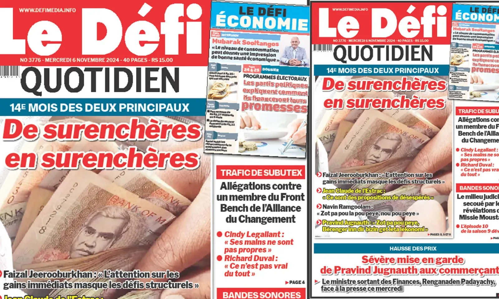 ? Voici la Une du Défi Quotidien. Le journal est en vente à Rs 15 l'exemplaire aux endroits habituels (supermarchés, boutiques, tabagies, superettes). Bonne lecture !