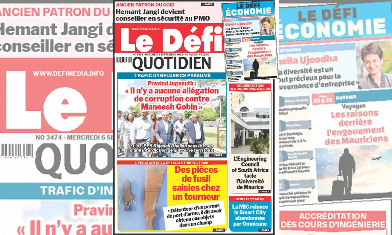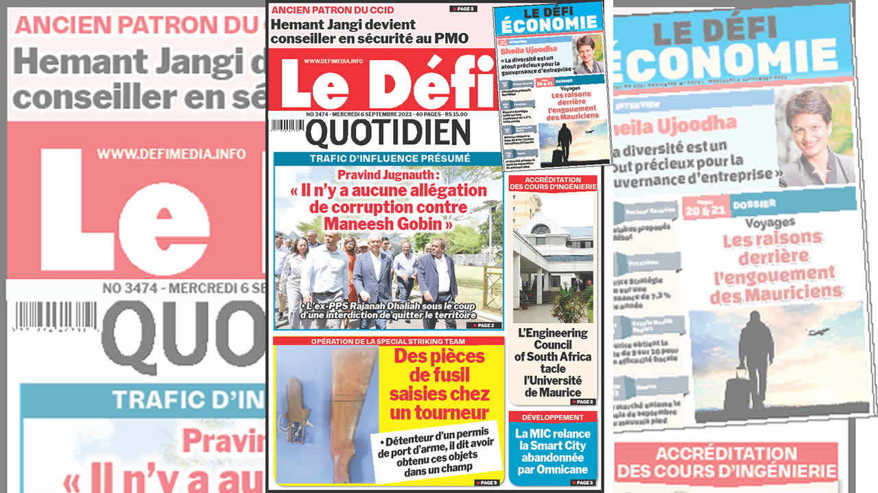 ? Voici la Une du Défi Quotidien. Le journal est en vente à Rs 15 l'exemplaire aux endroits habituels (supermarchés, boutiques, tabagies, superettes). Bonne lecture !