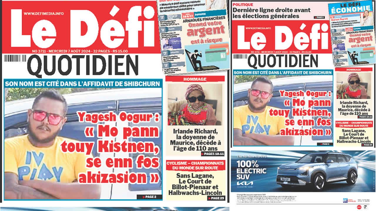 ? Voici la Une du Défi Quotidien. Le journal est en vente à Rs 15 l'exemplaire aux endroits habituels (supermarchés, boutiques, tabagies, superettes). Bonne lecture !