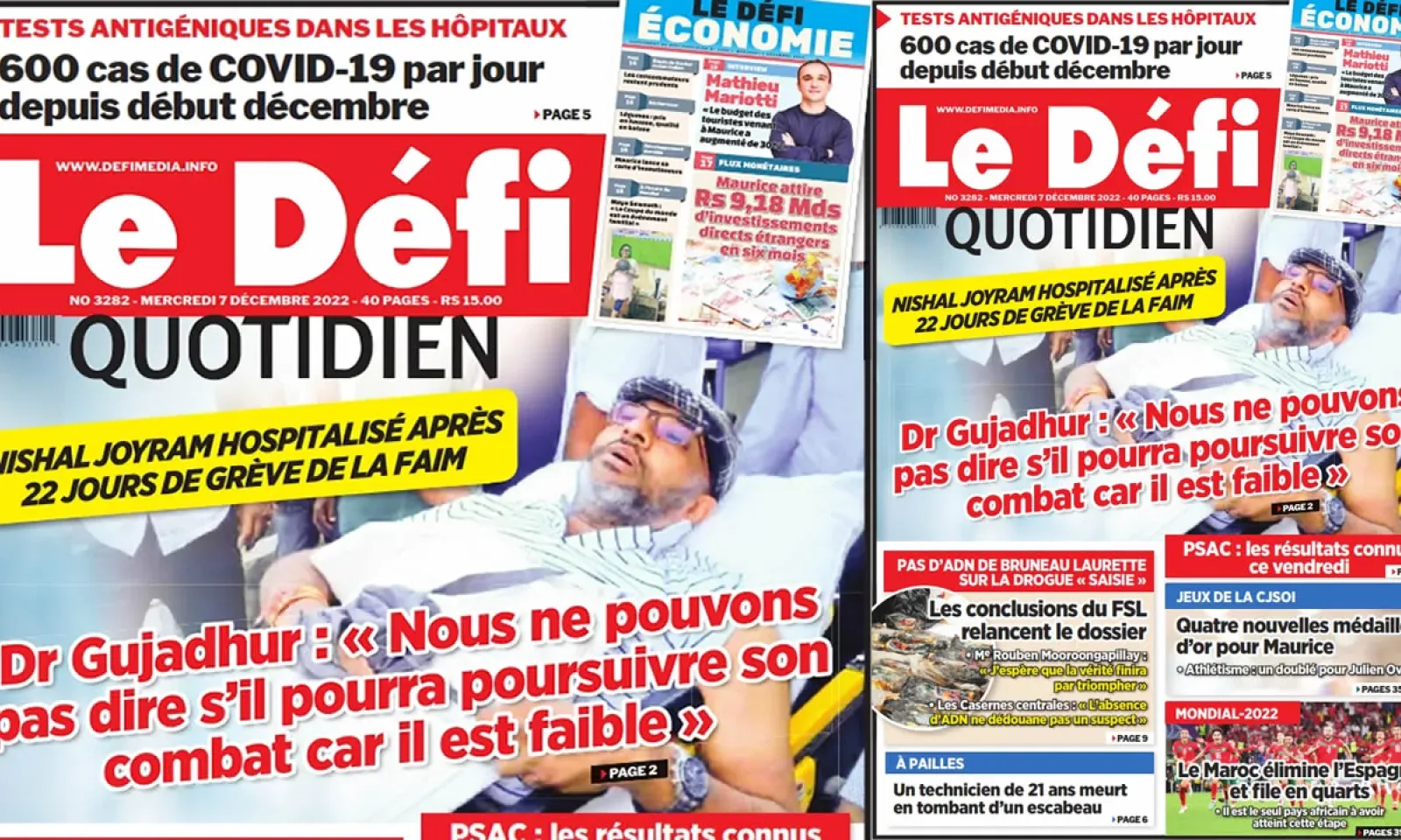 ? Voici la Une du Défi Quotidien. Le journal est en vente à Rs 15 l'exemplaire aux endroits habituels (supermarchés, boutiques, tabagies, superettes). Bonne lecture !