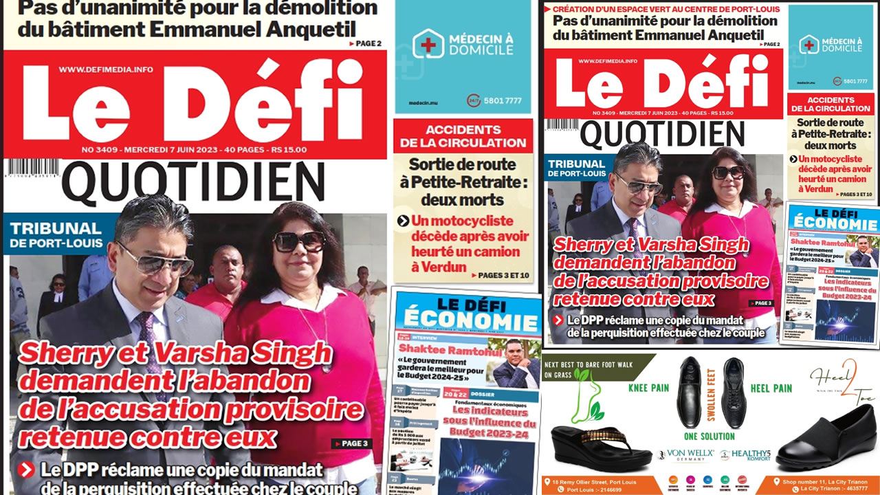 ? Voici la Une du Défi Quotidien. Le journal est en vente à Rs 15 l'exemplaire aux endroits habituels (supermarchés, boutiques, tabagies, superettes). Bonne lecture !
