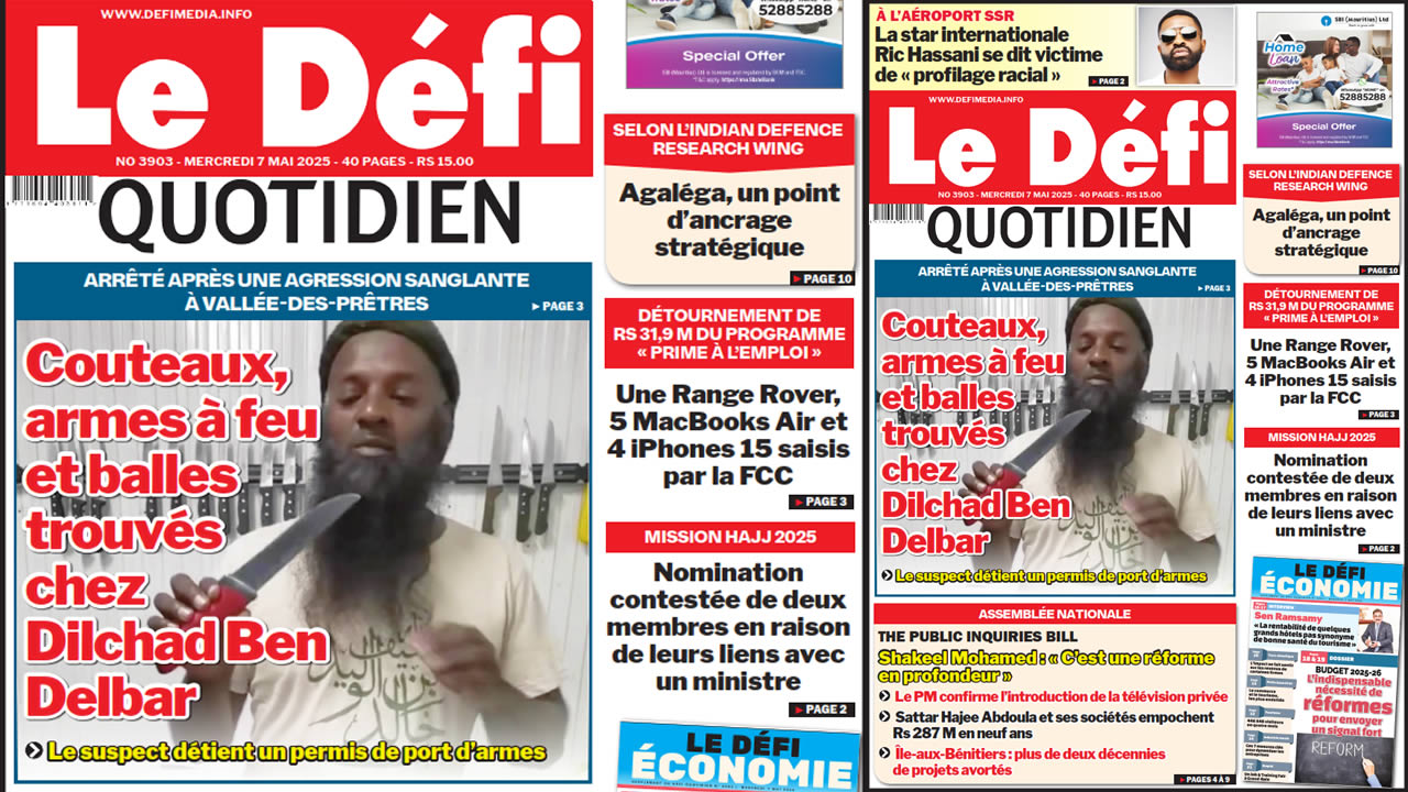 ? Voici la Une du Défi Quotidien. Le journal est en vente à Rs 15 l'exemplaire aux endroits habituels (supermarchés, boutiques, tabagies, superettes). Bonne lecture !