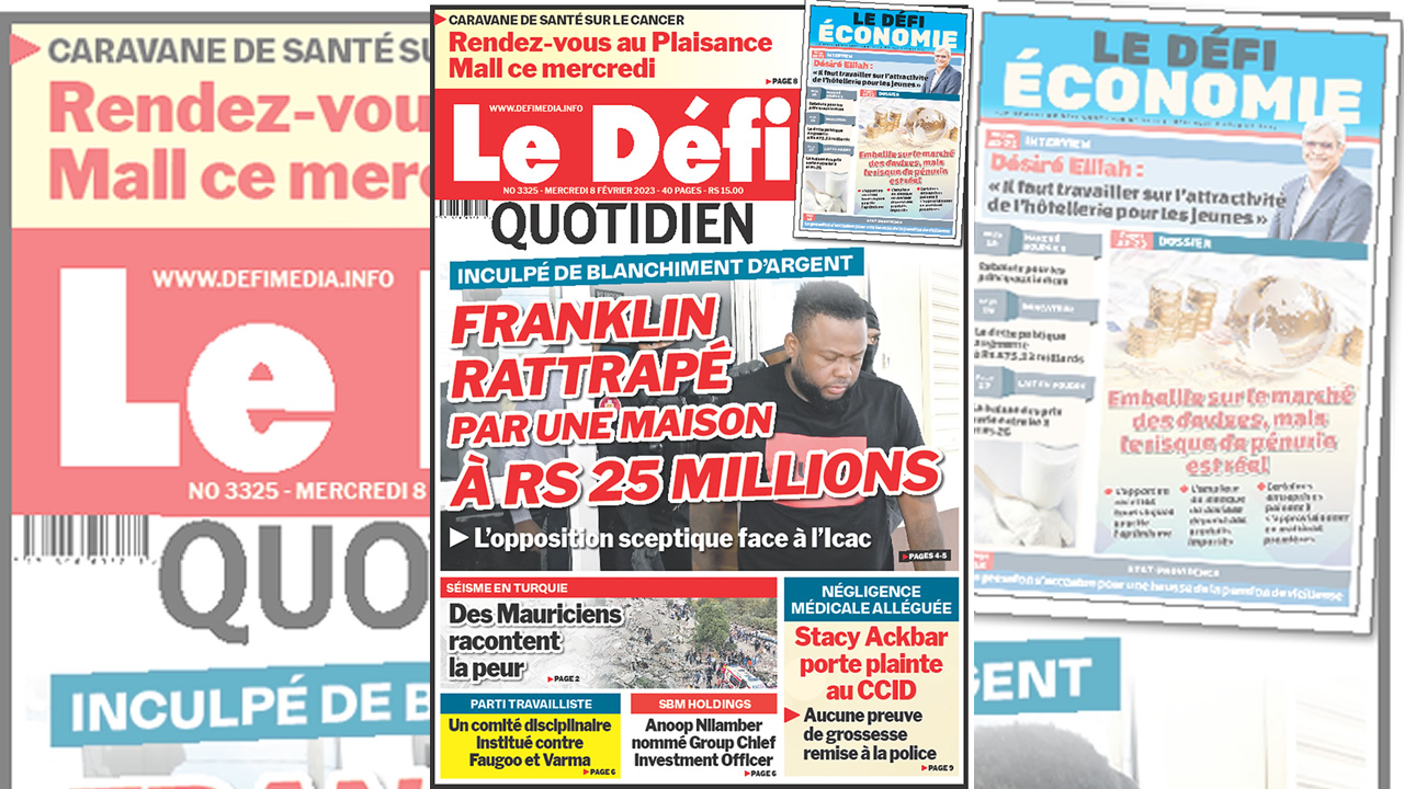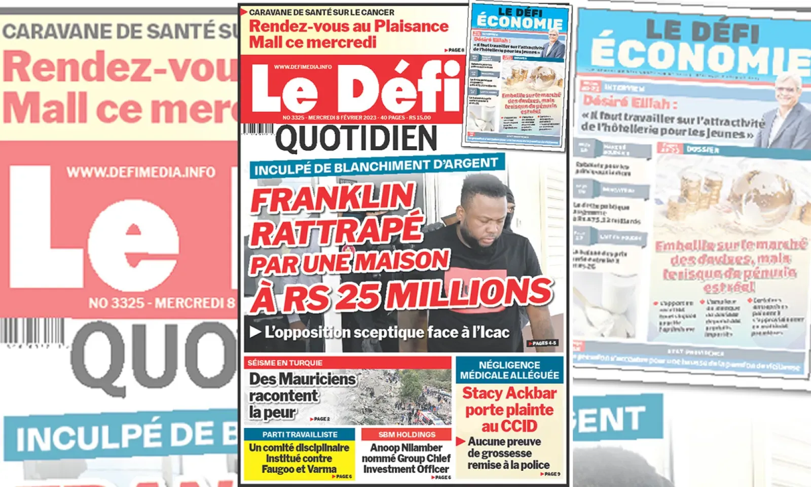? Voici la Une du Défi Quotidien. Le journal est en vente à Rs 15 l'exemplaire aux endroits habituels (supermarchés, boutiques, tabagies, superettes). Bonne lecture !