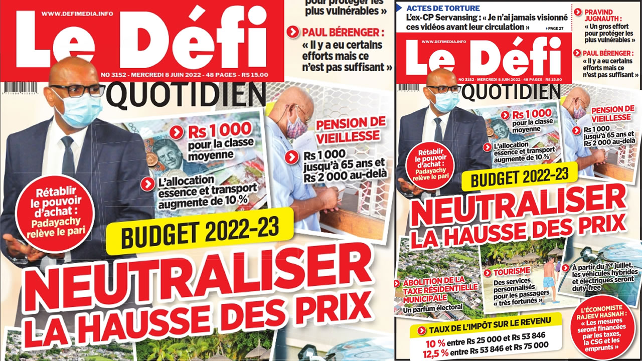 ? Voici la Une du Défi Quotidien. Le journal est en vente à Rs 15 l'exemplaire aux endroits habituels (supermarchés, boutiques, tabagies, superettes). Bonne lecture !
