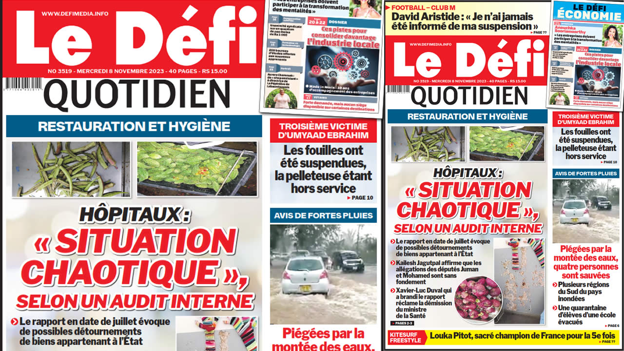 ? Voici la Une du Défi Quotidien. Le journal est en vente à Rs 15 l'exemplaire aux endroits habituels (supermarchés, boutiques, tabagies, superettes). Bonne lecture !