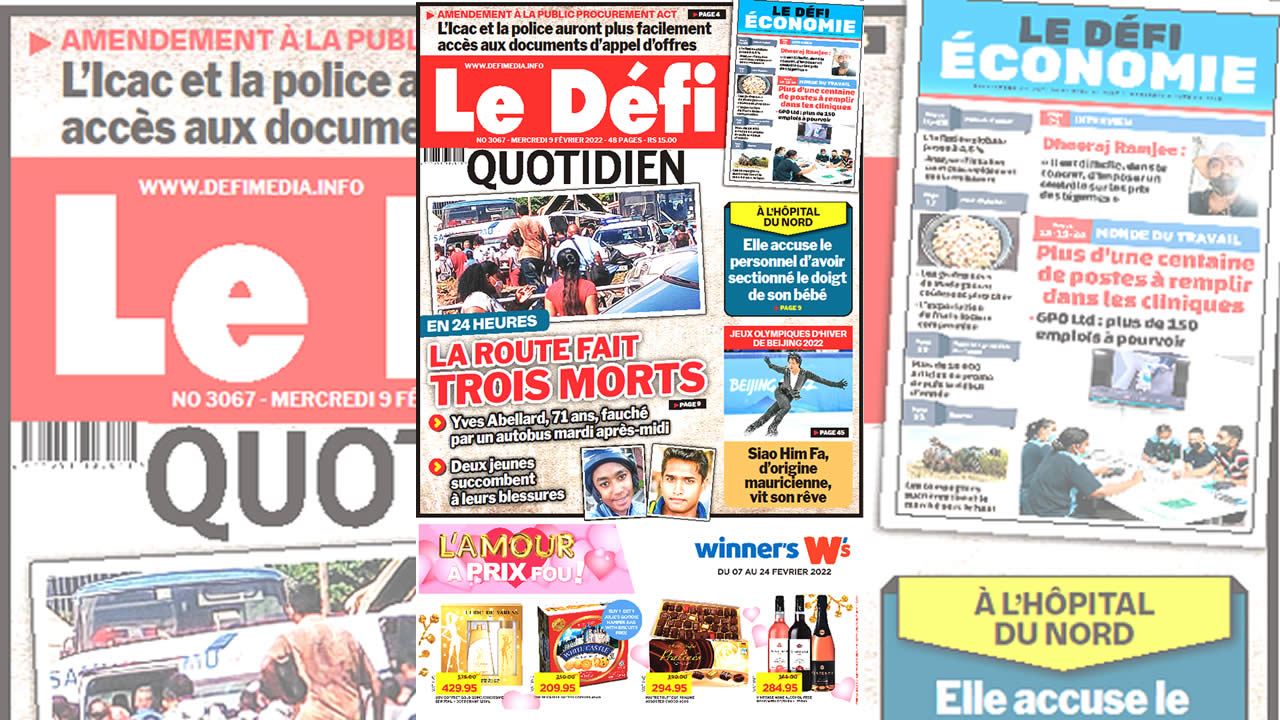 ? Voici la Une du Défi Quotidien. Le journal est en vente à Rs 15 l'exemplaire aux endroits habituels (supermarchés, boutiques, tabagies, superettes). Bonne lecture !