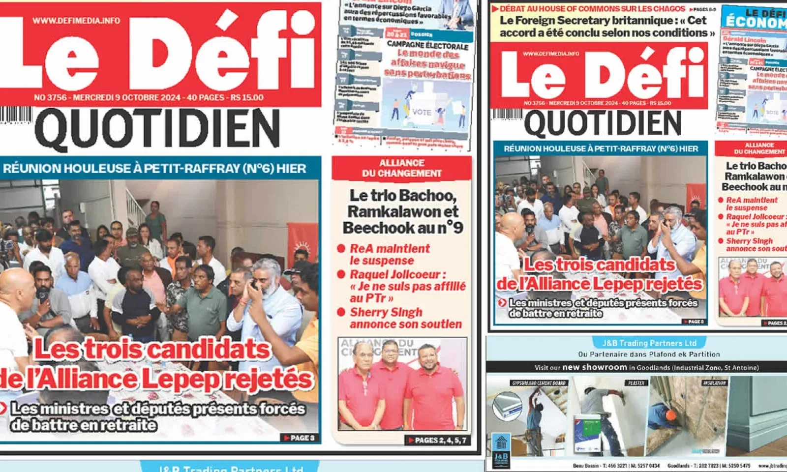? Voici la Une du Défi Quotidien. Le journal est en vente à Rs 15 l'exemplaire aux endroits habituels (supermarchés, boutiques, tabagies, superettes). Bonne lecture !