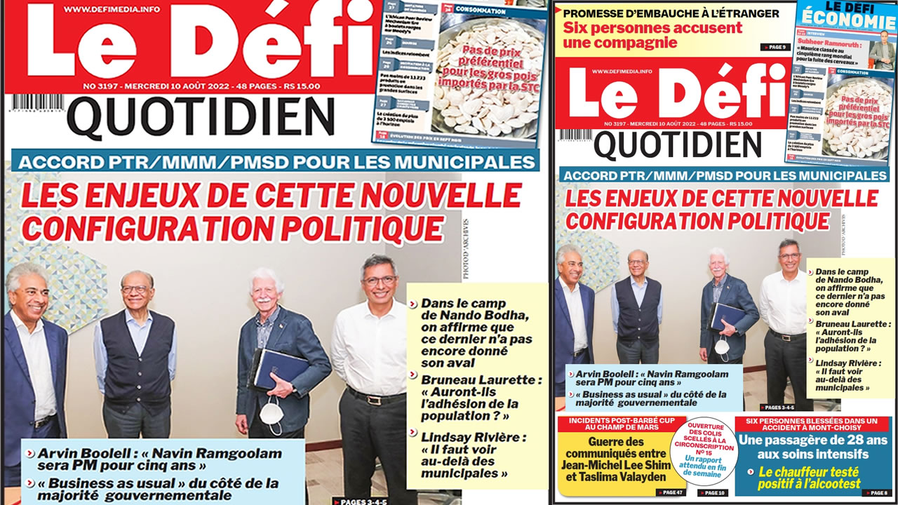 ? Voici la Une du Défi Quotidien. Le journal est en vente à Rs 15 l'exemplaire aux endroits habituels (supermarchés, boutiques, tabagies, superettes). Bonne lecture !
