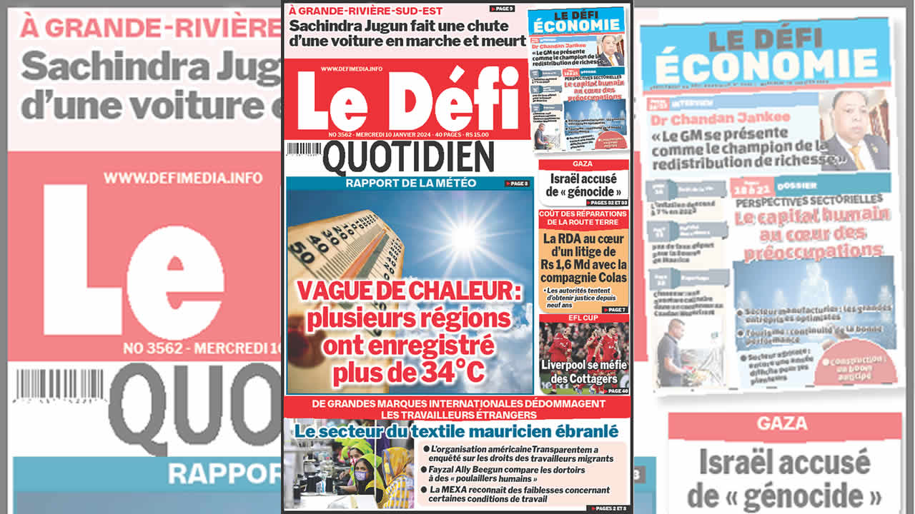 ? Voici la Une du Défi Quotidien. Le journal est en vente à Rs 15 l'exemplaire aux endroits habituels (supermarchés, boutiques, tabagies, superettes). Bonne lecture !