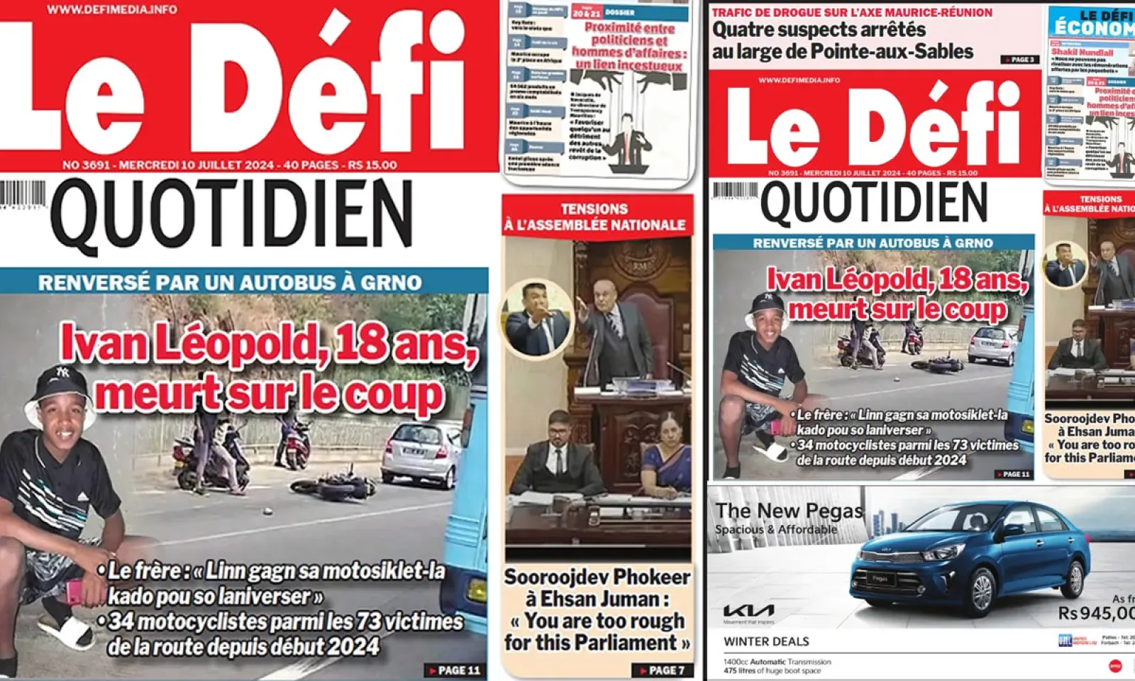 ? Voici la Une du Défi Quotidien. Le journal est en vente à Rs 15 l'exemplaire aux endroits habituels (supermarchés, boutiques, tabagies, superettes). Bonne lecture !