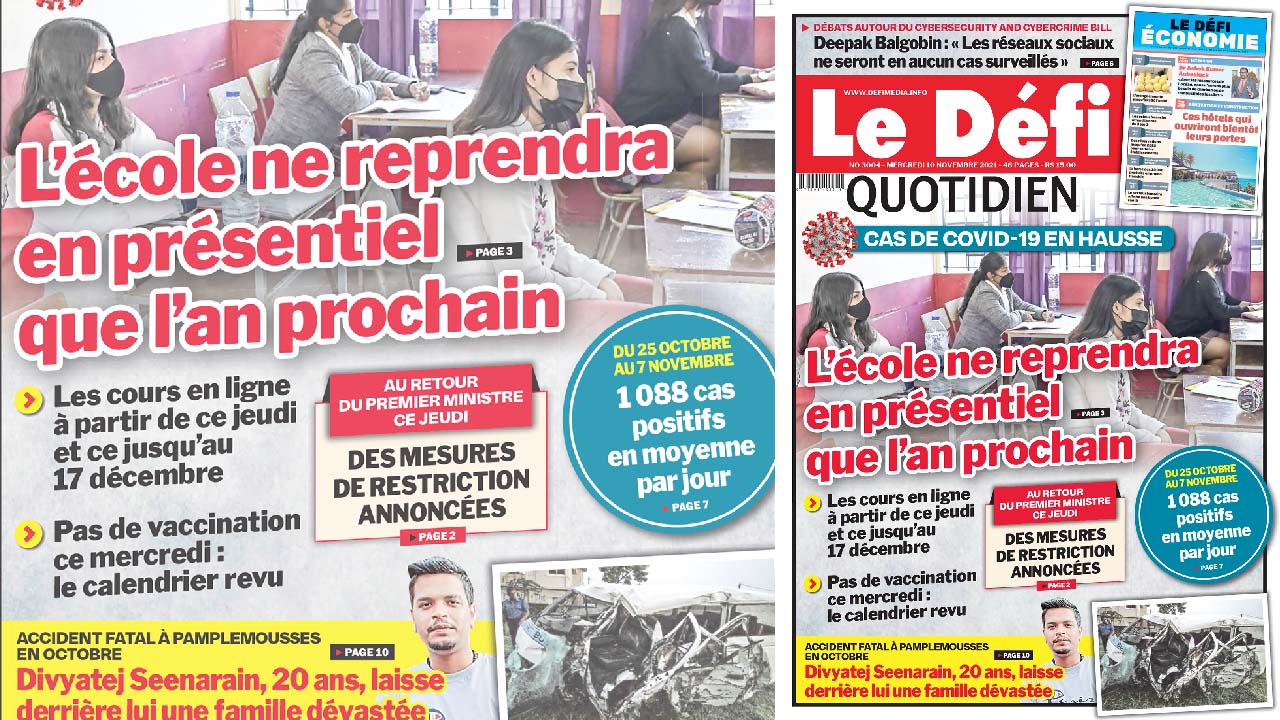 ? Voici la Une du Défi Quotidien. Le journal est en vente à Rs 15 l'exemplaire aux endroits habituels (supermarchés, boutiques, tabagies, superettes). Bonne lecture !