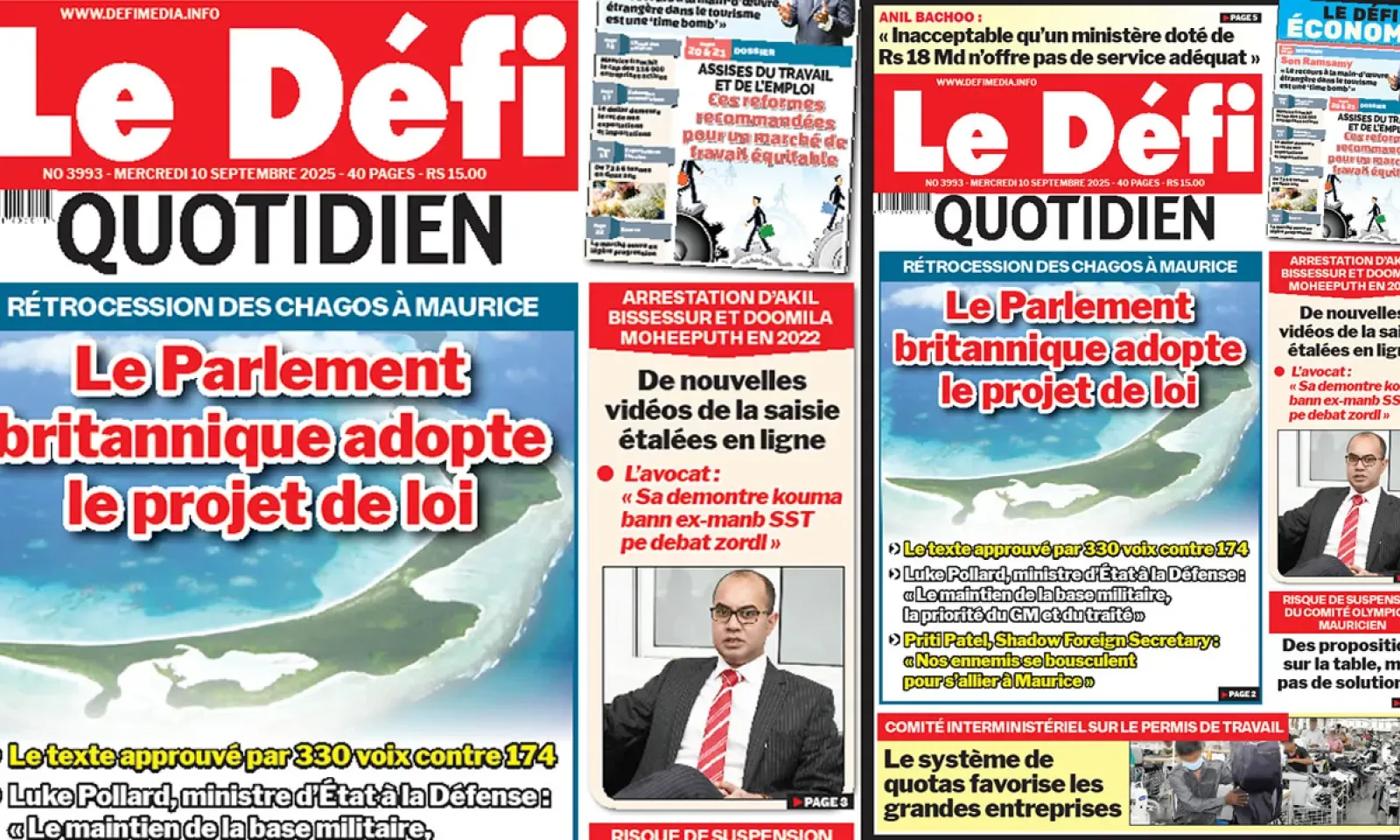 ? Voici la Une du Défi Quotidien. Le journal est en vente à Rs 15 l'exemplaire aux endroits habituels (supermarchés, boutiques, tabagies, superettes). Bonne lecture !